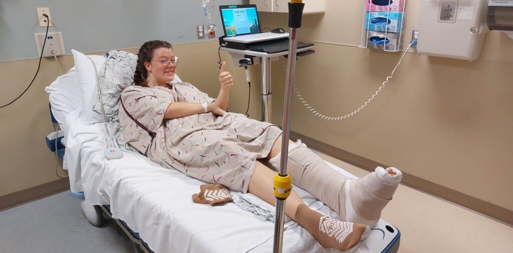 I just finished my first year of Bible school in May this year, and now that I know God’s plans for me are to be a missionary, I thought everything else would be really straightforward and easy. The next step I had in my life was to go on a mission trip to the Philippines. The Philippines has lots of what we call unreached people groups, so entire towns or villages full of people who will never have a chance to hear about Jesus unless someone goes out of their way to share it with them. I had plans since Nov of 2022 to go on a two-week trip there to serve and to see if that would be a country I could possibly serve in once I graduated school, but God had other plans. On May 24th, a week before my trip to the Philippines was scheduled to leave, I fell on a hill, dislocated, and broke my leg in three places. And instead of leaving for a different country, I had surgery in Battle Creek. This was not what I had planned for my summer at all.